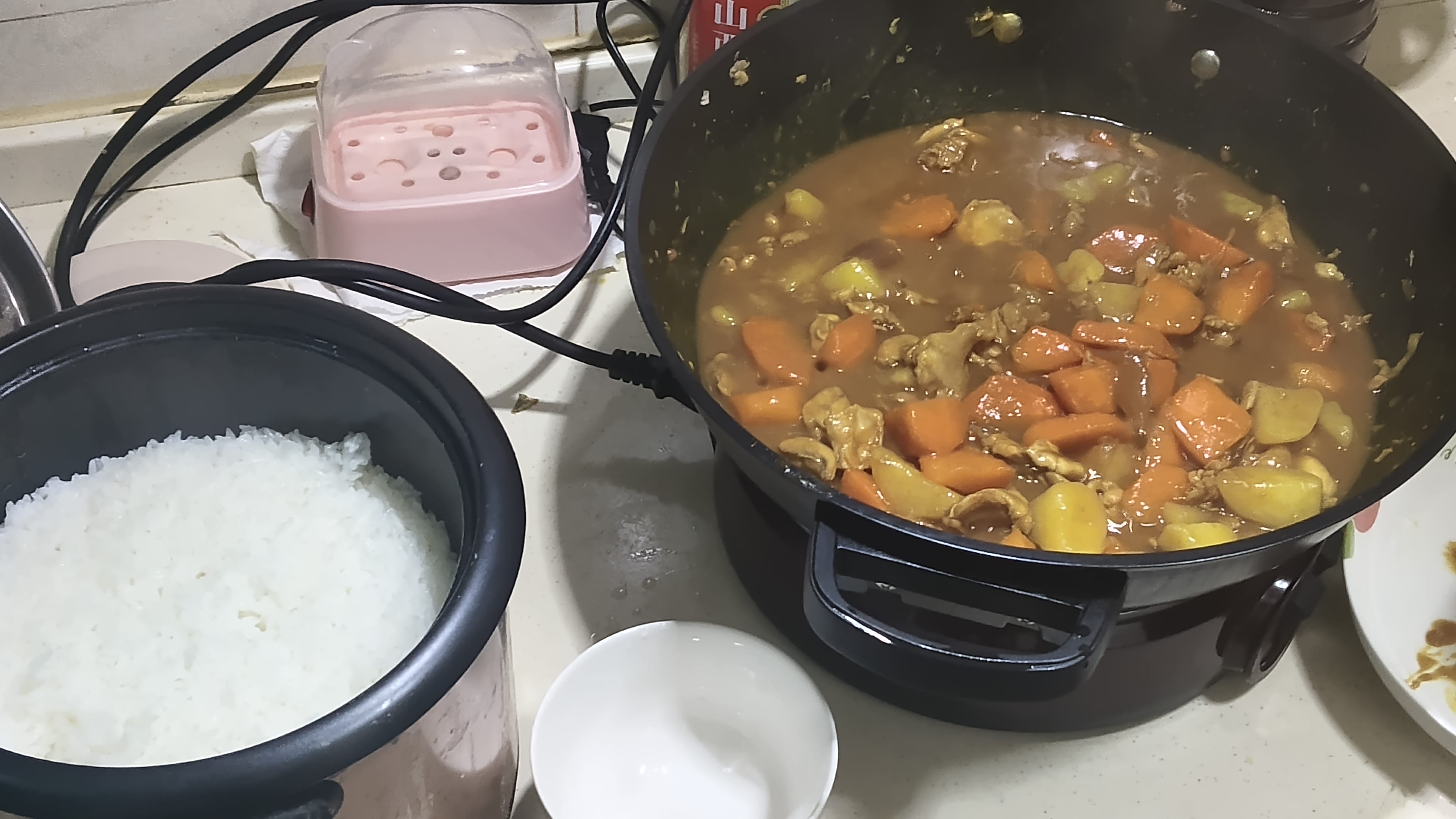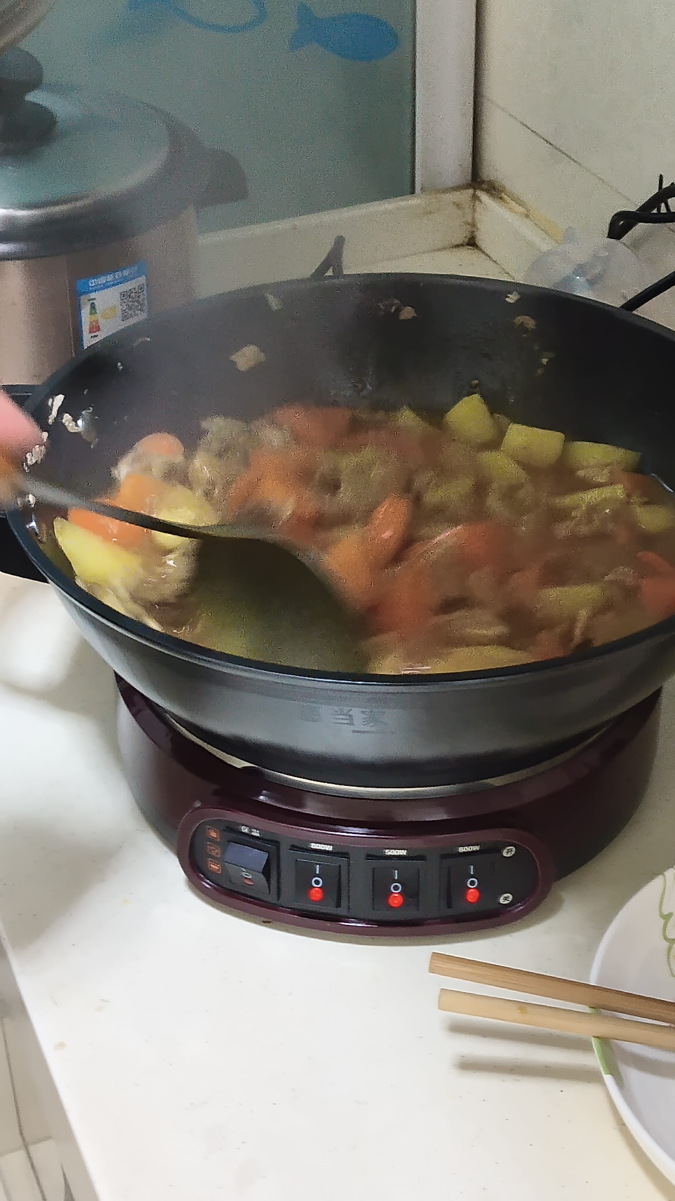 井井和坤坤一起去买土豆、胡萝卜、洋葱和鸡腿肉。